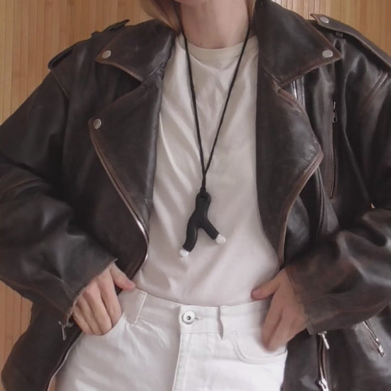 Suspended from a dyed raw silk cord, the pendant is lightweight yet sculptural — a wearable artwork that feels equally at home draped across the body or resting as an object of beauty on a table.