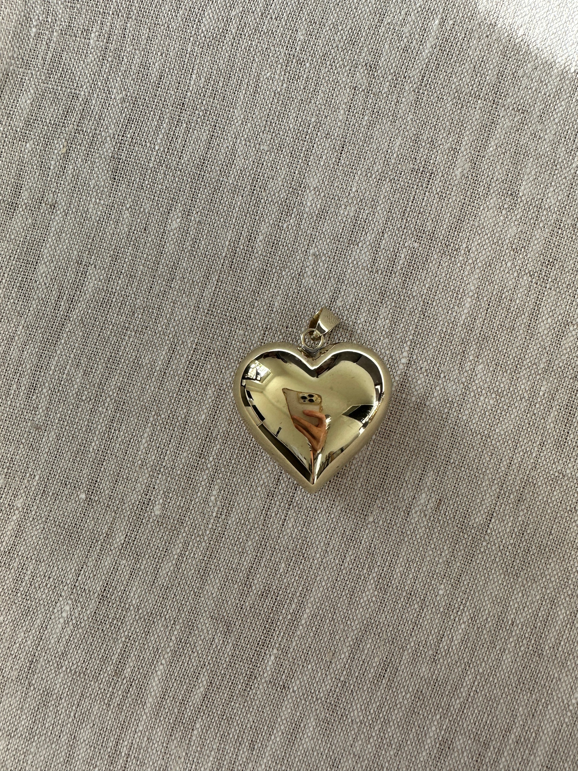 The heart is made out of brass and measures 36 mm x 37mm, it can easily be polished if it tarnishes ( read more about the material and care on our jewellery care page ) it comes with a 145 cm long waxed cord that wraps around the neck in any length and style you wish.